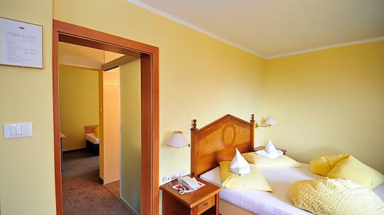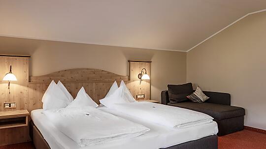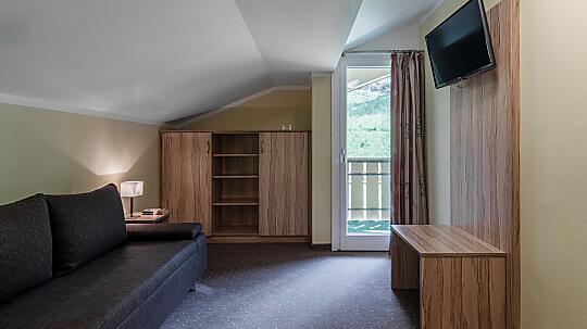Familienzimmer, Ostbalkon zur Bergseite, separates Kinderzimmer, Holzboden, Schreibtisch, Sitzgelegenheit, Kofferablage, Telefon, Flachbildschirm TV - SAT, Safe,...