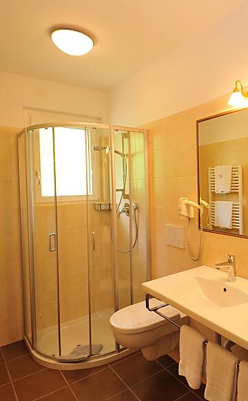 Familiensuite, großer Süd-West-Balkon mit Panoramablick ins Tal, separates Kinderzimmer. Holzboden, Sitzecke, Schreibtisch, Kofferablage, Telefon, Flachbildschirm TV - SAT, Safe, Badezimmer mit Dusche, WC, Haarföhn, Pflegeprodukte.